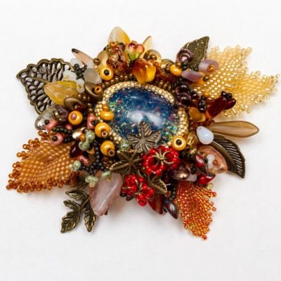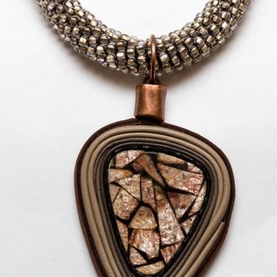 A beautiful amulet in orange & brown. It`s a reflection of traditional artistry and classic character.